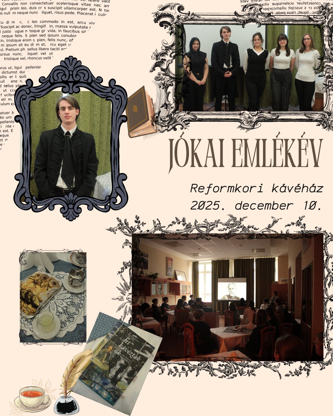 Méltó módon zártuk a Jókai-emlékévet: iskolánk tanétterme egy délutánra reformkori kávéházzá alakult, ahol Jókai Mór "személyesen" hozta el korának hangulatát, ízeit és szellemiségét. Simon Ábel színészpalánta diákunk (13.C) a @weoressandorszinhaz jelmezébe bújva elevenítette meg a 200 éve született író óriás személyét. Humoros hangvételű történeteihez @nyaryk Így kávéztak ők kötete volt segítségére.