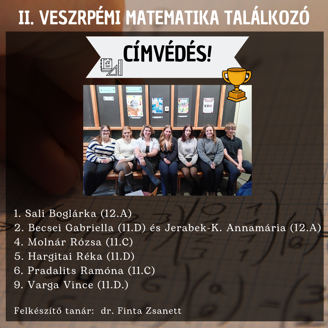 A 12.D osztályos Dragovics Dorka, Dragovics Luca és Molnár Nilla csapatát Antal Ádám tanár úr készítette fel.